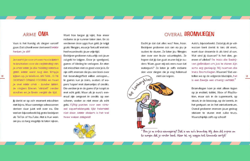 Je wordt ouder en mag steeds meer zelf beslissen. Maar kies je écht zelf of word je stiekem gestuurd in deze wereld vol apps, influencers en reclame? In Het bromvliegeffect junior leren gedragswetenschapper Eva van den Broek en reclamestrateeg Tim den Heijer kinderen om het bromvliegeffect te herkennen, de negatieve invloed ervan te vermijden en het op een goede manier zelf te gebruiken. Op school, in de winkel, op straat, online én thuis.