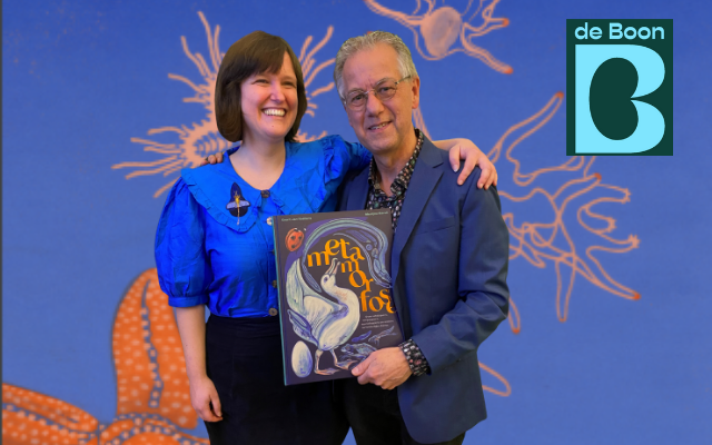 De shortlist van de Boon voor kinder- en jeugdliteratuur van 2026 is bekend gemaakt! Uit de longlist zijn 5 titels geselecteerd, waaronder het boek Metamorfose van Merlijne Marell en Geert-Jan Roebers (zie foto).